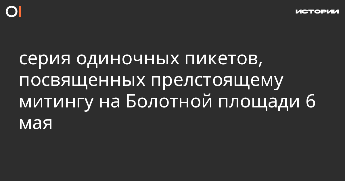 серия одиночных пикетов, посвященных прелстоящему митингу на Болотной площади 6 мая