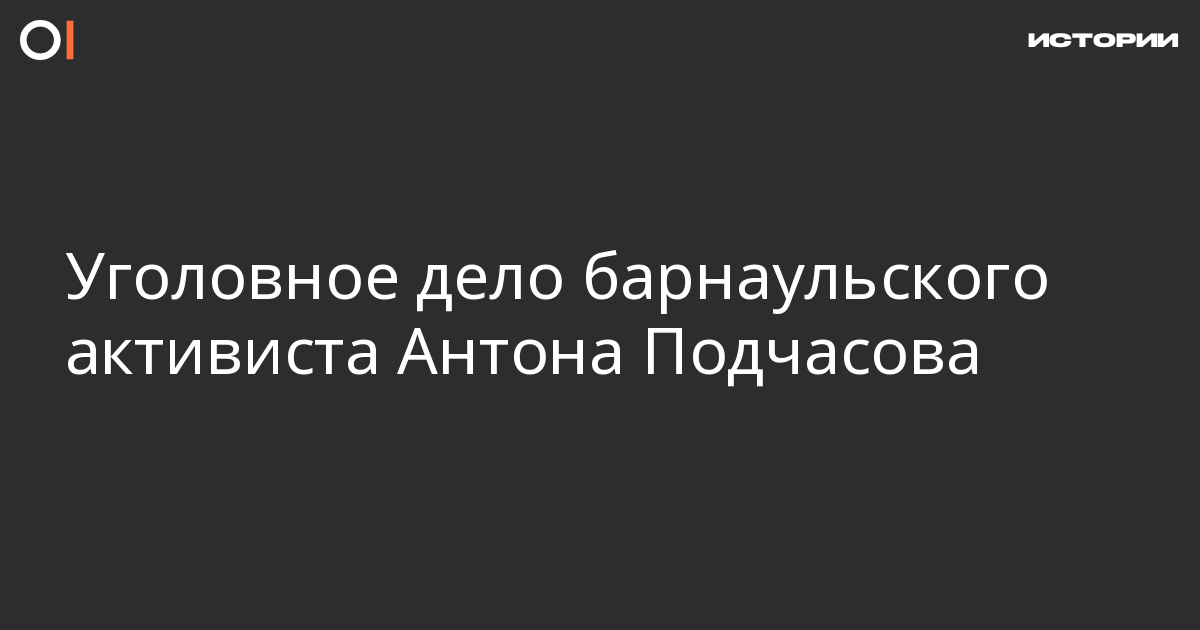 Барнаульского оппозиционного активиста Антона Подчасова приговорили к полутора годам лишения свободы условно, признав его виновным в публичных призывах к экстремистской деятельности и действиях, направленных на возбуждение ненависти, вражды, а также на унижение достоинства группы лиц по признакам расы, национальности, происхождения, совершенные публично. По версии следствия и обвинения, это выразилось в том, что Подчасов сделал на своей странице в соцсети «ВКонтакте» републикацию текста «Русофобии пост».