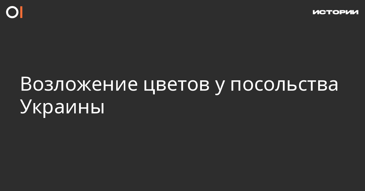 К посольству Украины пришли люди возложить цветы и зажечь свечи в память о погибших накануне в Киеве.