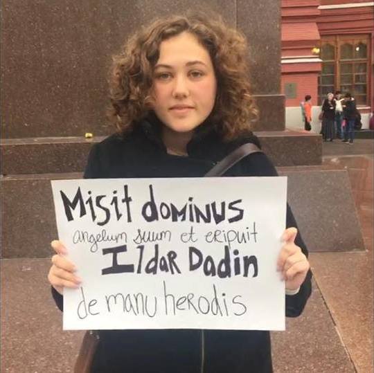 В Москве у памятника Жукову за вечер дважды была задержана гражданка США Ариэлла Кац на одиночном пикете в поддержку Ильдара Дадина, приговоренного к двум с половиной годам колонии за «неоднократные нарушения порядка проведения публичных мероприятий.