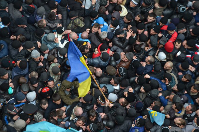 Так, 26 лютого 2014 року біля будівлі Верховної Ради Криму відбулися два мітинги. Один з них організувала організація «Російська єдність», яка підтримувала приєднання Криму до складу Росії. Учасники другого мітингу, ініційованого Меджлісом кримських татар, планували перешкодити засіданню Верховної Ради півострова, на якому могли ухвалити рішення про призначення референдуму щодо статусу Криму. Конфлікт між учасниками проросійського та проукраїнського мітингів переріс у сутичку — сталася тиснява, внаслідок якої постраждали 30 людей, а двоє загинули.
